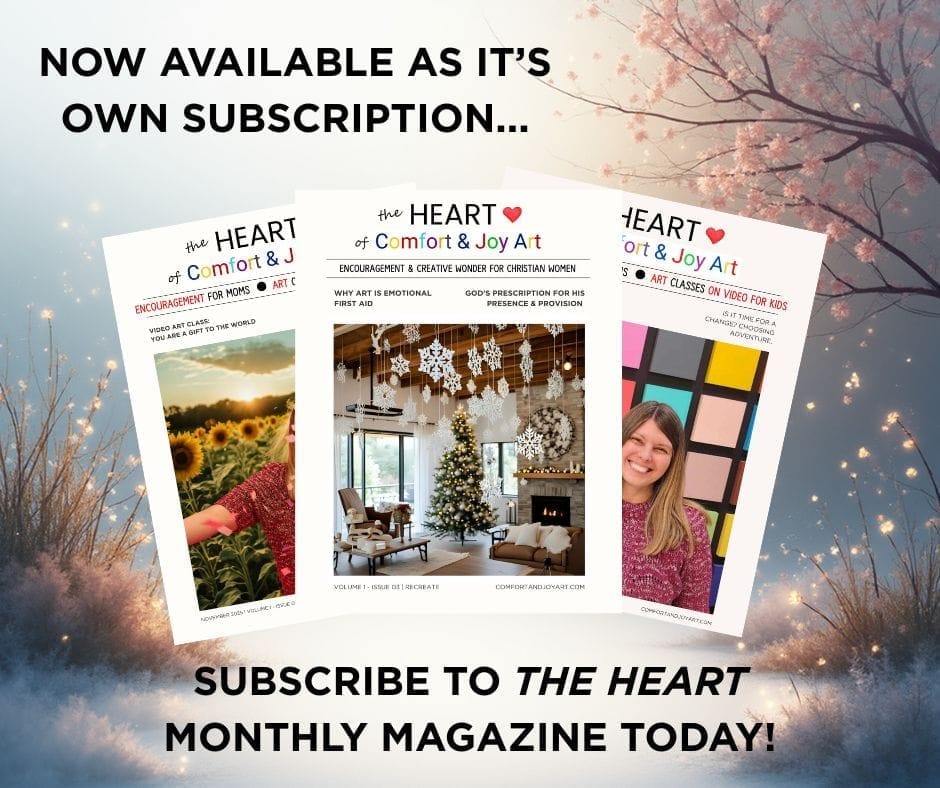 π Subscribe to The Heart β a monthly magazine for Christian women filled with encouragement from God's Word to inspire you in your relationship with God, and to give you a monthly dose of creativity and joy.